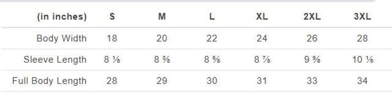 this t-shirt comes in unisex sizes and the size chart is listed in inches.